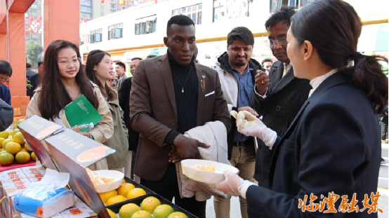 走进活动现场,整齐划一的特色展位映入眼帘,每个展位都精心装点,展示着临澧的特色农产品。在“橙意满满”品尝吧,醇香清甜的脐橙与香水柚整齐摆放,供游客们免费试吃。来宾们纷纷驻足品尝,对临澧脐橙和香水柚的独特风味赞不绝口。
